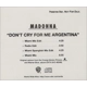 Madonna Don't Cry for Me Argentina Maxi Single Promo